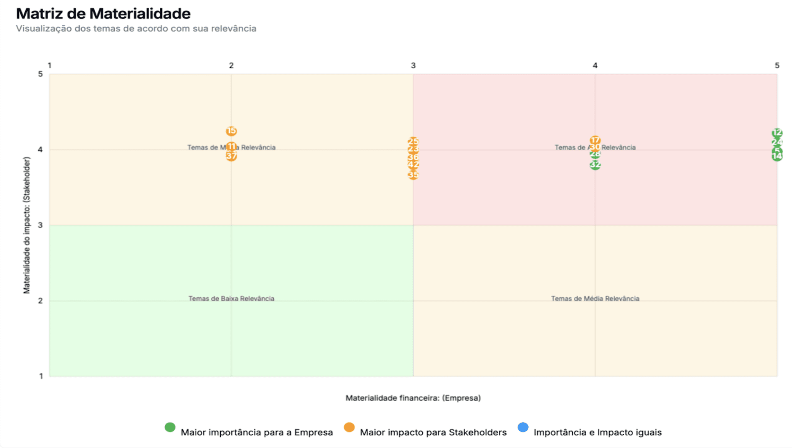 - Priorização dos temas ESG com base em dados objetivos e critérios de relevância.